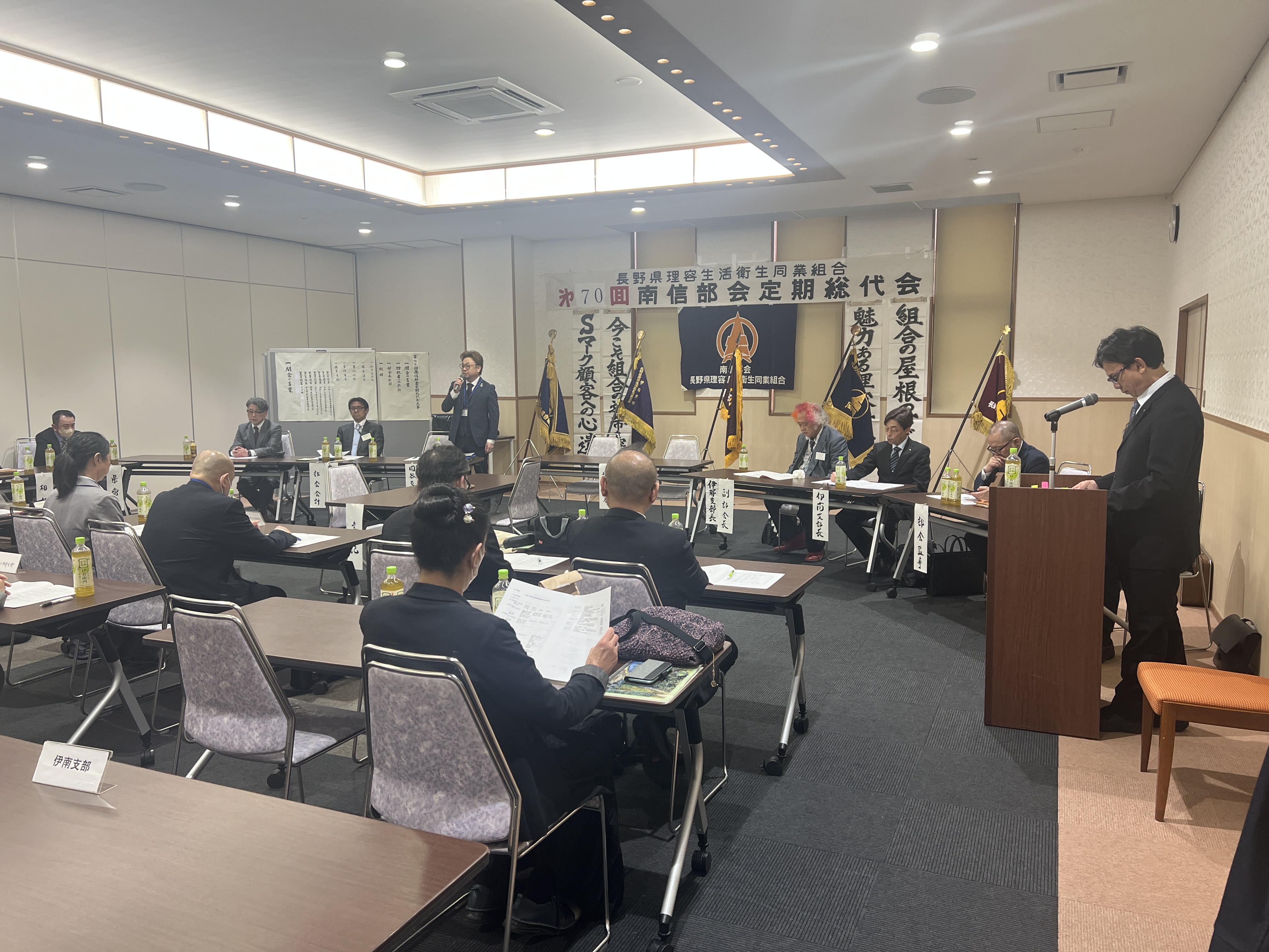 4月13日(月)に第70回南信部会定期総代会が駒ケ根市のアイパルで行われ岡谷支部からは4人で参加して来ました 久しぶりにお行き会いする他支部の方々の元気な顔を見る事も出来ました あいにく桜を見る時間はなく行きの車窓から眺めただけでしたが春を感じる事も出来ました 総会も緊張の中始まり着々と各議案が承認され無事に総会を終わる事が出来ました 総会の中で話がありましたが組合のメリットは皆が同じ方向を向いて頑張って行かれているからこそ、我々の業界も生き残っていかれている事を改めて認識出来ました 大変な時代だからこそ皆でより一層頑張って行こうと懇親会ではお酒も入り熱の入ったお話も出来ました 中々出来る経験ではないので勉強になりました